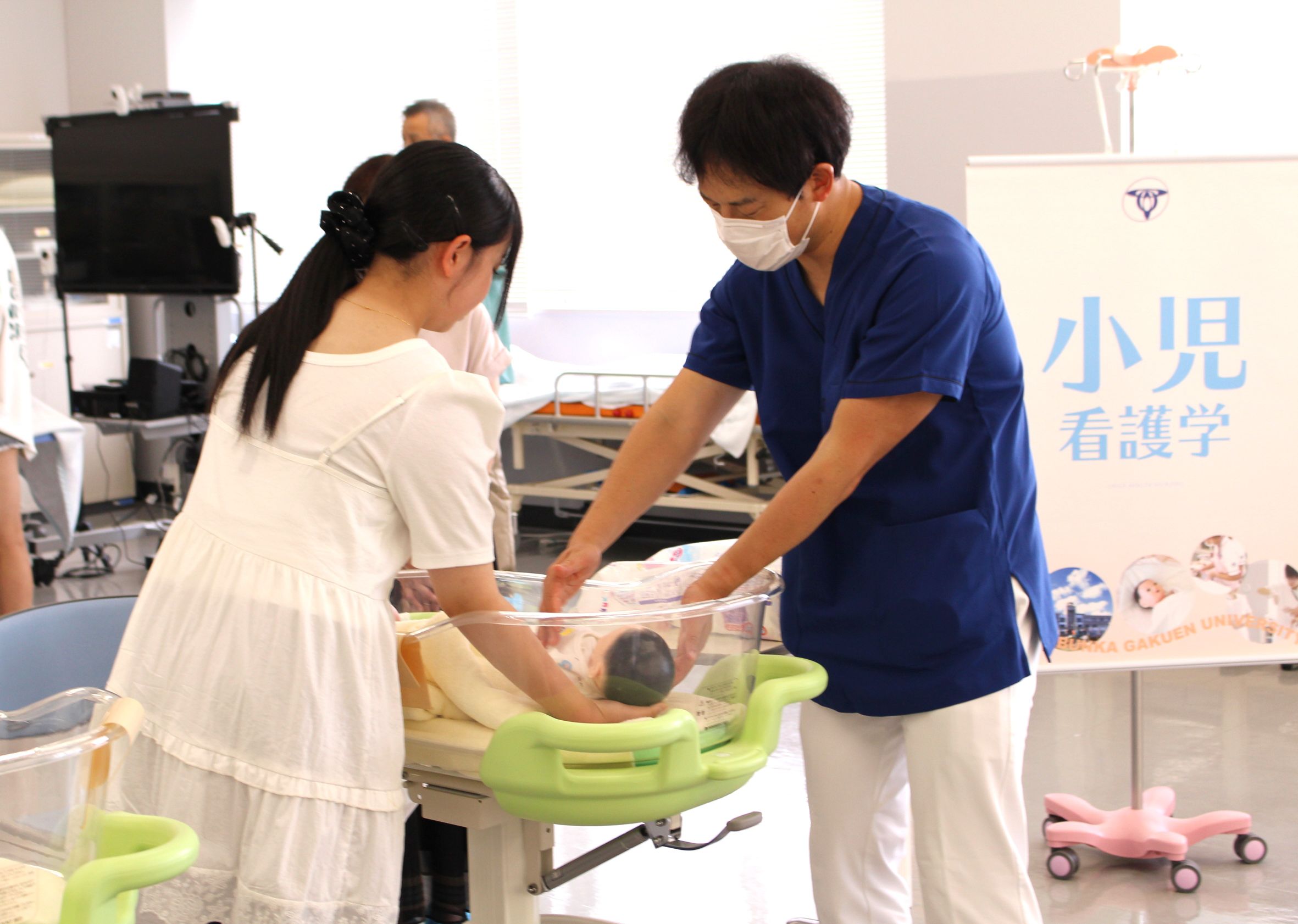 こちらは、看護学科以外の学生の方の参加もあり、赤ちゃんとのふれあいや