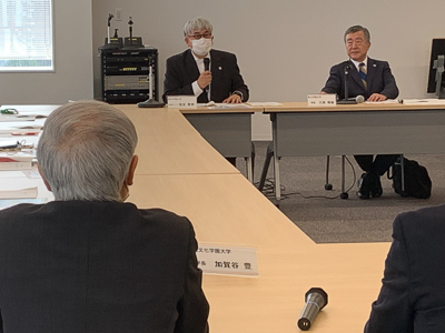 会議では、議長である大西晴樹東北学院大学長が開会の辞を述べられた後、「宮城の就業体験プログラム」など4つの事業に関する取組状況や事業計画などについて審議が行われるとともに、産学官金連携に係る諸課題について、各委員から意見が述べられました。その中で、本学の加賀谷学長から検討課題の一つであった周辺地域との連携に関する論点が提示され、これを基に活発な意見交換が行われました。