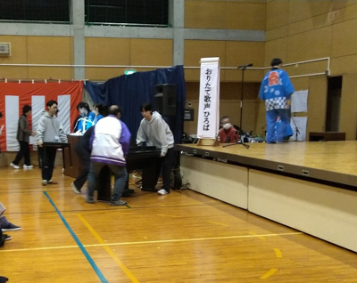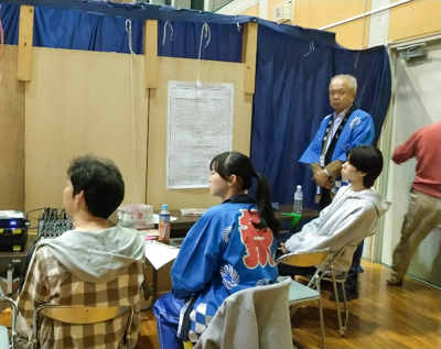 特に重要だと感じたのは、舞台転換を素早く行うことで観客の集中や盛り上がりを保つことで、チームワークが求められ、他のスタッフとのコミュニケーションの大切さを実感しました。また、昼休憩にはおにぎりと豚汁がふるまわれ、冷えた体が温まるとともに、参加者同士の交流が生まれる貴重な時間となりました。終了後には会場の撤収作業にも参加し、無事に一日の活動を終えることができました。