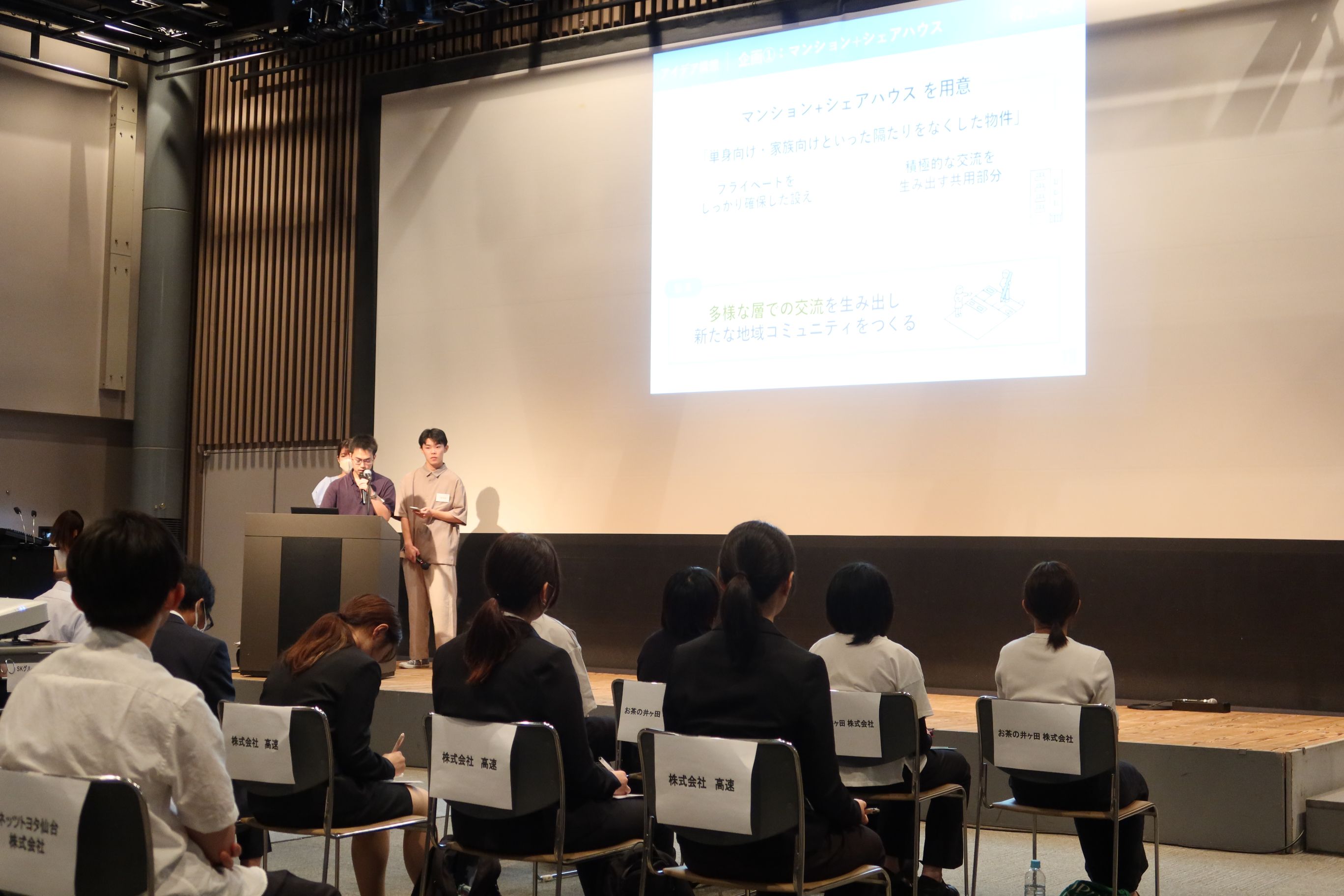 最終日の成果発表会では、経営者を前に学生達は緊張しながらも、それぞれ趣向を凝らして堂々と発表することが出来ていました。難しい課題ではありましたが、どのチームも企業や地域の強みと課題を分析し、実現したい未来をイメージした上で、学生視点を取り入れたアイデアを伝えていました。発表会終了後には配属先企業の経営者や担当者からのフィードバックがあり、学生達は少しほっとした表情で意見交換を行う様子が見られました。
