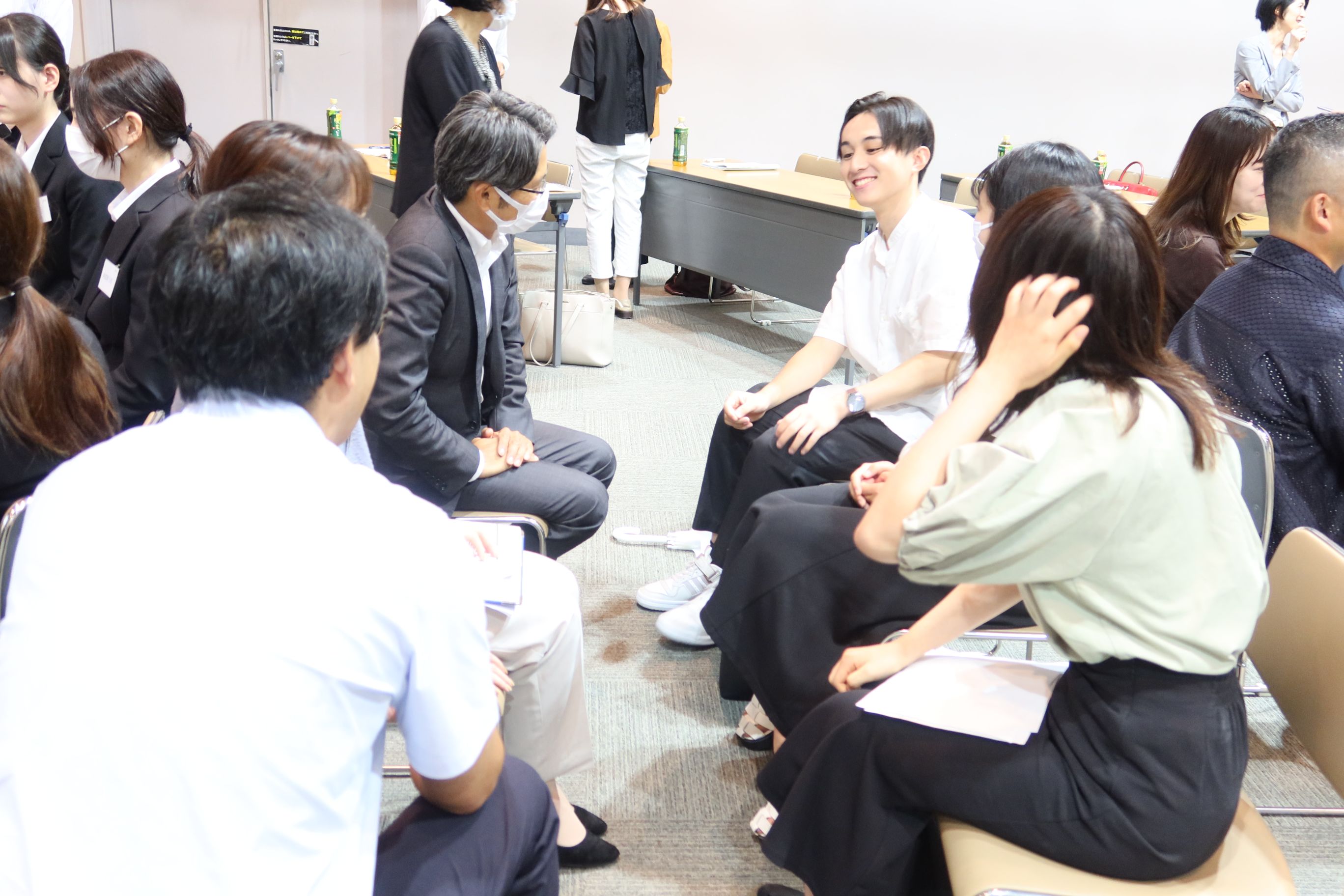 事後研修では、「なんとなく楽しかった」「やってよかった」で終わるのではなく、気づきや学びを言語化し、経験学習を促しました。具体的には、「振り返りシート」「社会人基礎力の変化」「事前目標の達成度」の観点から客観的かつ俯瞰的に経験を振り返り、書く、話す、他者の経験を聞くことを通して、自身の成長や変化、気づきの明確化を図りました。インターンシップを通して、普段は接することのない経営者や社員の方々へインタビューしたり、懇談する中で、様々な働き方や生き方に触れ、視野が広がった様子が見られました。