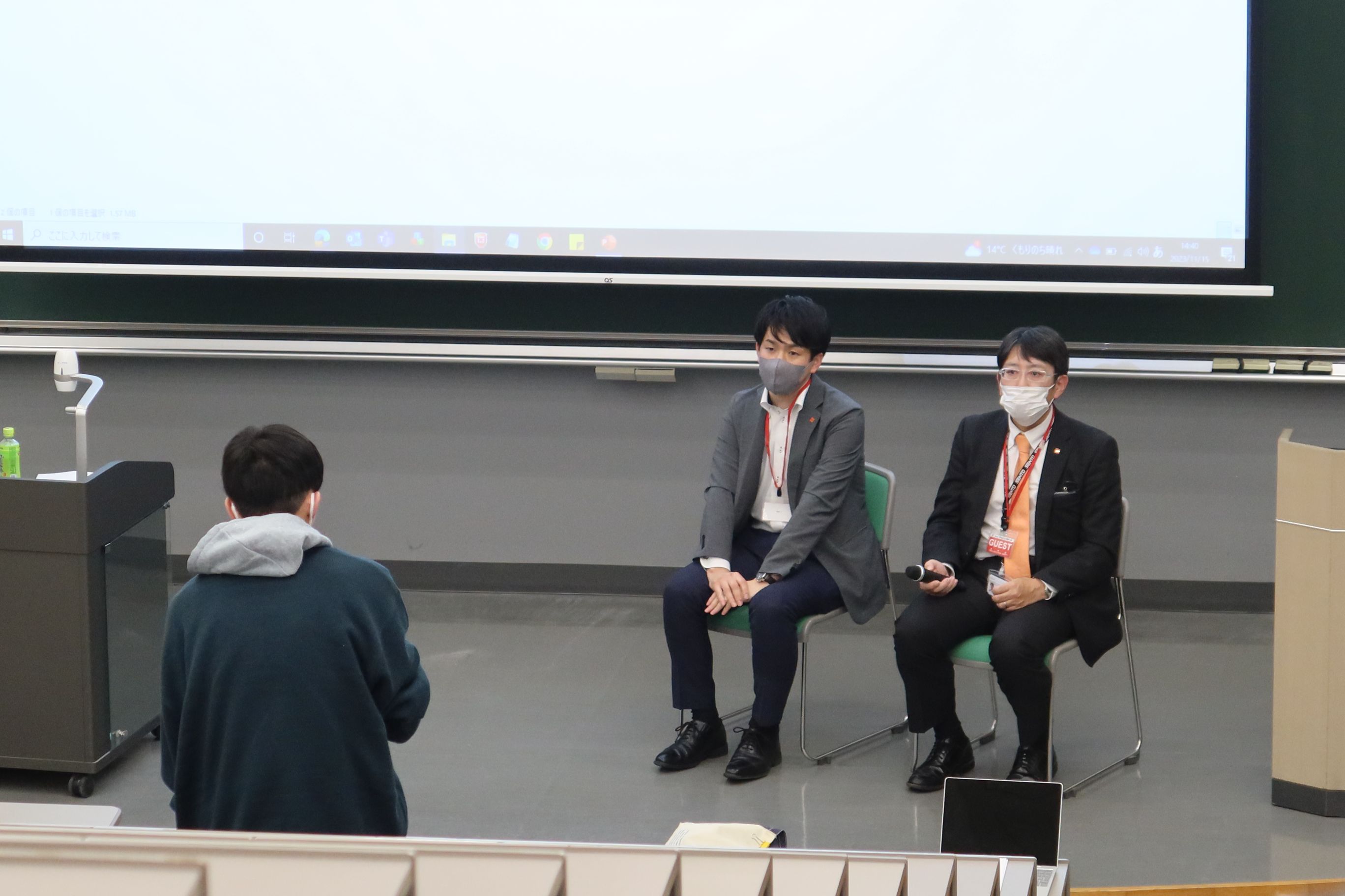 それぞれ、ソリューションビジネスにおけるソリューション営業、社会福祉業界における高齢者及び障害者福祉と介護?相談業務、ロジスティクスにおける物流マネジメント及びコンサルタント営業等、各業界の現状と将来展望、各事業所のビジョンに関する丁寧な説明と解説、各職種の特徴と新卒学生に求める人物像についてアドバイスをいただきました。