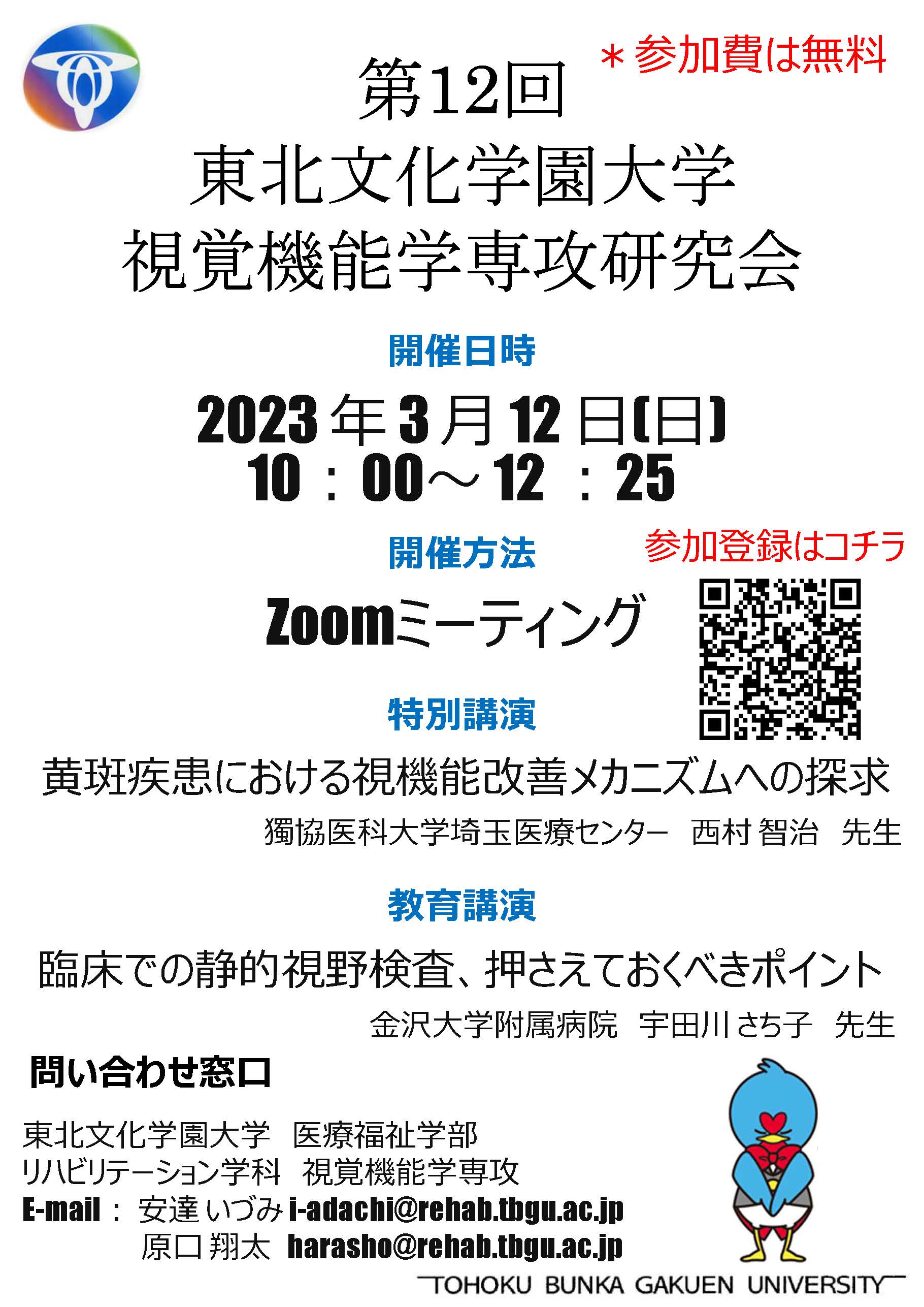 <差し替え>【視覚機能学専攻】第12回東北文化学園大学視覚機能学専攻研究会のお知らせ(2023.3.12)