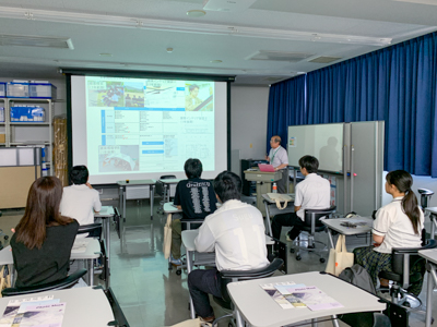 川村先生より学科紹介、冨山先生より模擬授業を行いました。