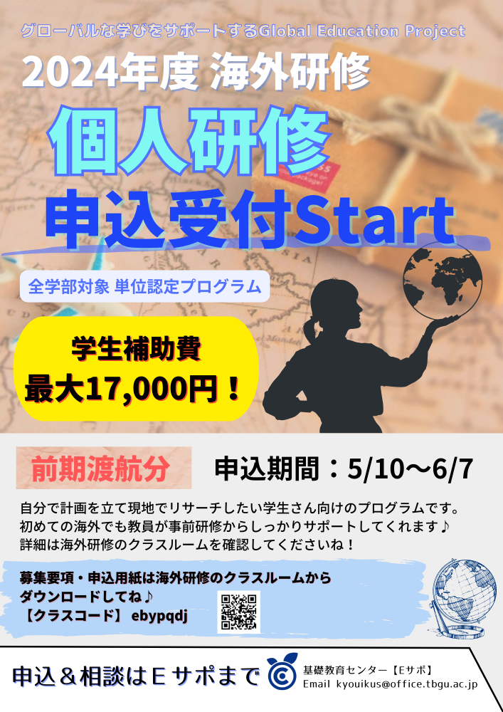 2024年度 前期渡航分「個人研修」の申込受付が5月10日から始まります!