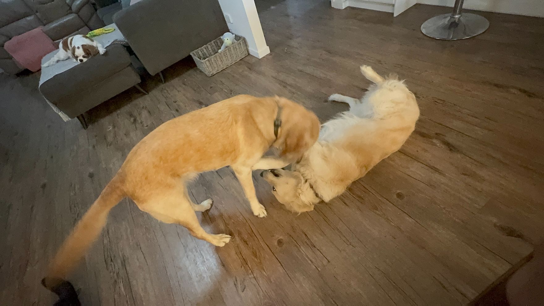 買い物から帰った後に、ホストファミリーの犬の散歩に行きました。