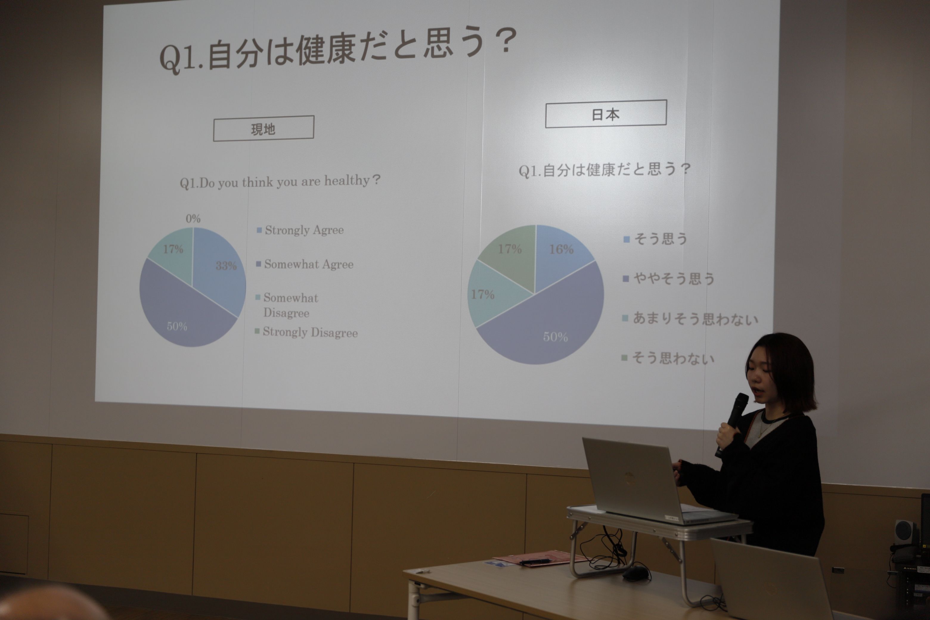日本の学生にも同様のアンケートを実施し、その回答結果からの考察を話してくれました。