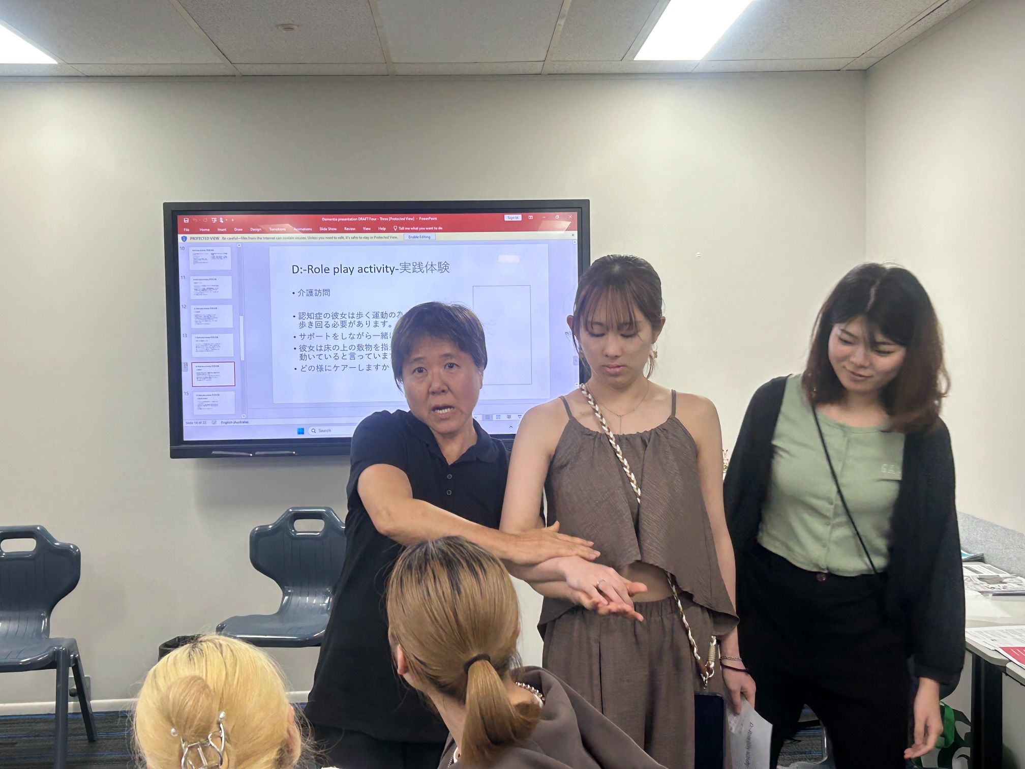 午後は、語学学校に戻り、現地の高齢者施設で勤務している、
