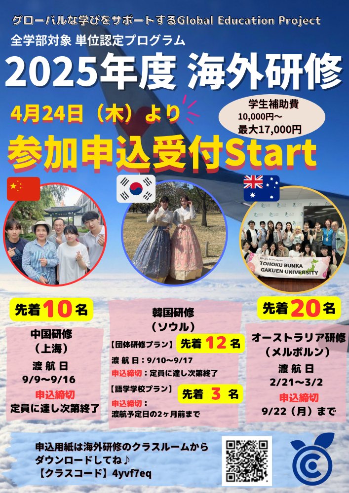 本日より2025年度「海外研修」(グループ研修)申込受付が始まりました!