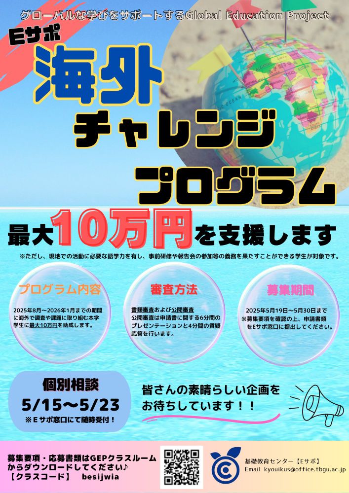 ※申請前にGEP専用クラスルームもしくは TBGUポータルサイトにアップしている募集要項を必ずご確認ください